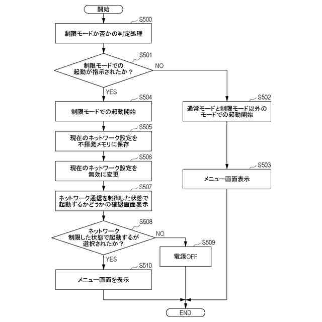 通信装置が複数の制限モードのうちいずれかの制限モードで起動する場合のフローチャート図である。