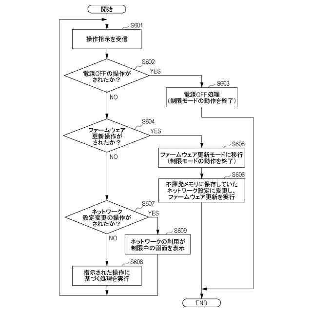 プリンタ等の通信装置において、通信装置が不具合で通常起動ができない場合に、機能の一部を制限した「制限モード」で起動し、特定の機能のみを動作可能としたり、プログラムの更新(アップデート)処理を実行させて不具合を解消する場合がある。