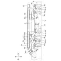 ところが、上記従来の車室前部構造では、パッド106の下面107に対し軸線L1がなす角度αによっては、次の懸念がある。アクセルインターロック装置110によりアクセルペダル103の踏み込み操作が規制されているときに、パッド106に過剰な荷重が加えられると、シャフト113に対し、後方へ向かう力が作用する。この力により、シャフト113の先端部が、図13に示すように、パッド106の下面107に沿って後方へ移動しながら、同シャフト113が後方へ倒れる。これに伴い、ブラケット115の架け渡し部116が変形させられる。その結果、パッド106の踏み込み操作が可能になる。乗降扉が開放されているにも拘わらず、車両が発車可能になるおそれがある。なお、図12中の矢印Aは、パッド106の踏み込み方向を示し、矢印Bはシャフト113が倒れる方向を示している。