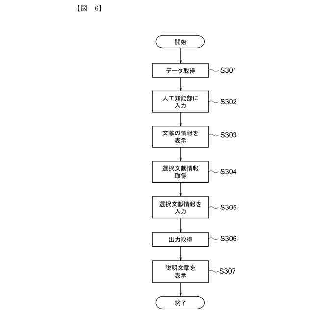 前記データ取得部で取得した前記対象画像データを前記人工知能部に入力することで、前記対象物に関連する複数の文献の情報を出力し、