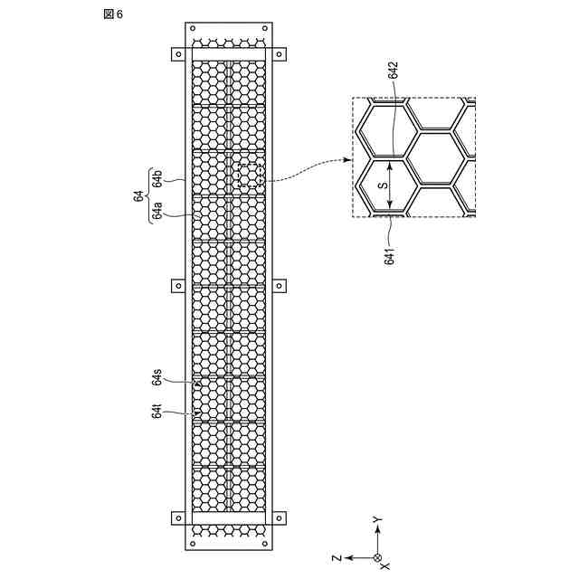 前記ハニカム構造の正六角形の平行する二辺間の距離をSとした場合、