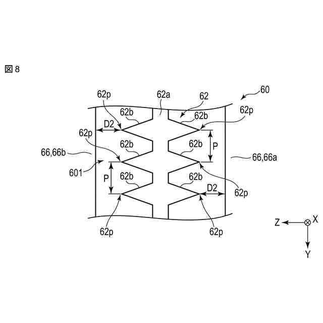 複数の前記突起部のうち、隣り合って並ぶもの同士の間の距離の最大距離をPとした場合、