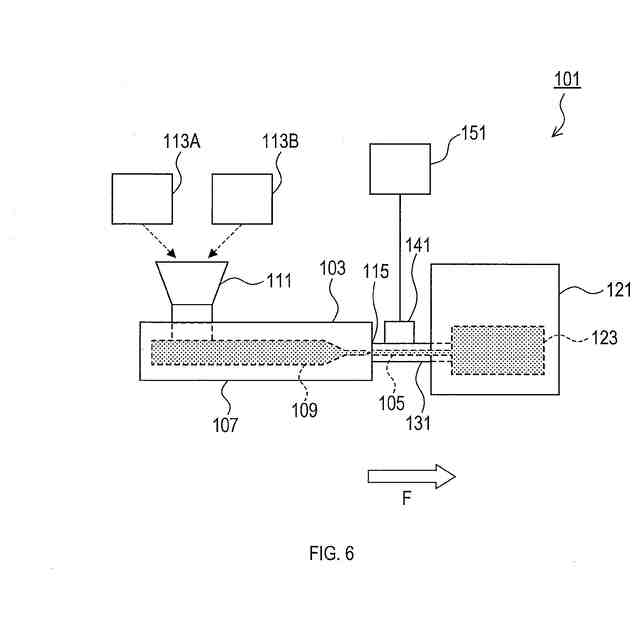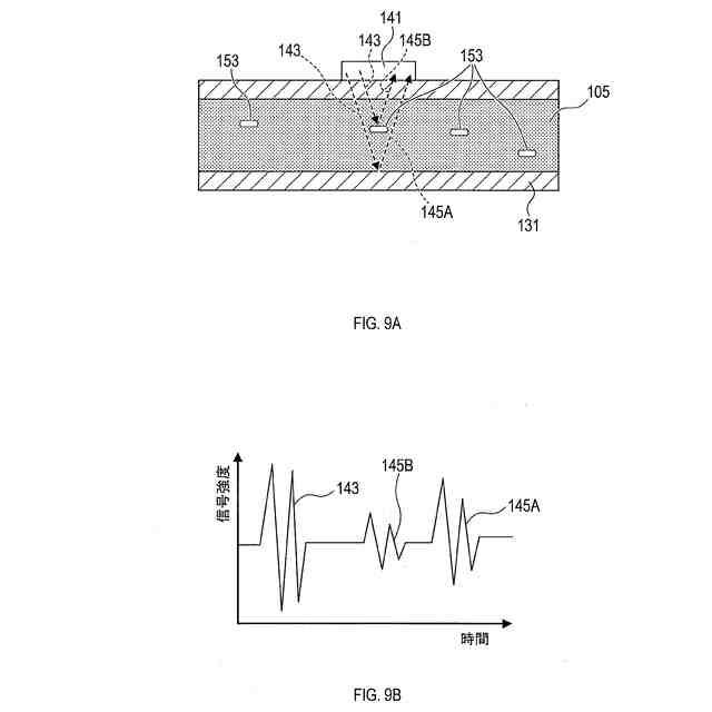 図9Aは、接続部の内部を流れている2液混合型液状ゴムに異物が含まれている状態を示す説明図である。図9Bは、図9Aに示す状態において、測定部が取得し、判定部に送信する測定データを示す説明図である。