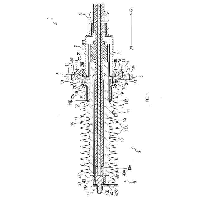 ケーブル接続構造体1は、電力ケーブル10の端部付近に取り付けられる部材である。図1に示すように、ケーブル接続構造体1は、本体部3と、フランジ5と、カバー7と、封止部8と、接続部9と、を備える。
