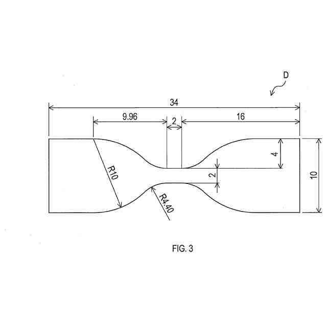 ダンベル試験片の形状及び大きさを表す平面図である。