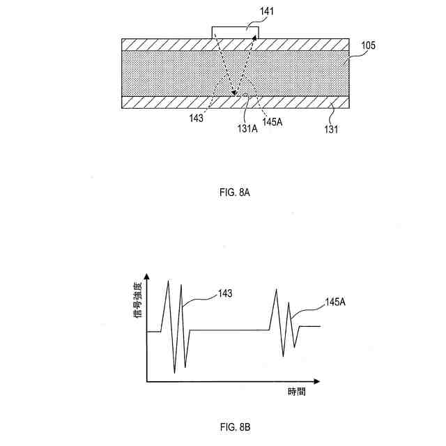 図8Aは、接続部の内部を流れている2液混合型液状ゴムに異物が含まれていない状態を示す説明図である。図8Bは、図8Aに示す状態において、測定部が取得し、判定部に送信する測定データを示す説明図である。