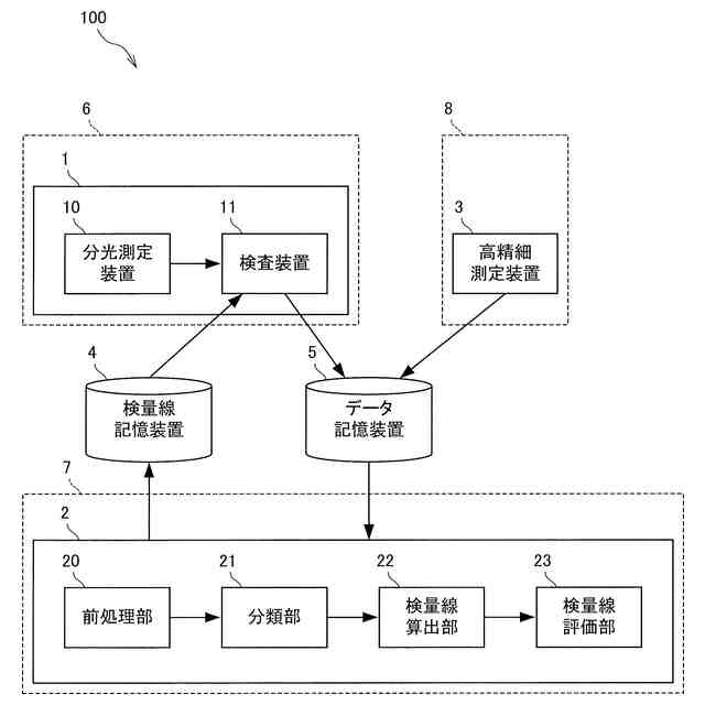 しかしながら、特許文献1に記載されたようなシステムは、学習モデル(以下、本発明における検量線に相当するため「検量線」という)を生成するときに、検査装置と学習装置とがネットワークに対してオンラインである必要があるため、作業効率を低下させてしまうといった課題があった。