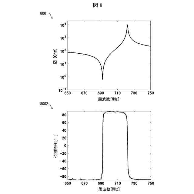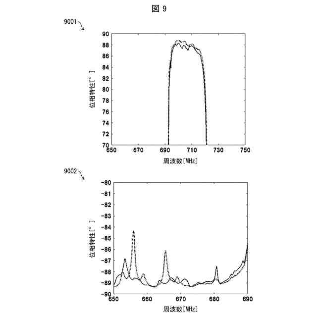 図8に示す周波数と位相特性との関係を示すグラフを部分拡大したグラフである。