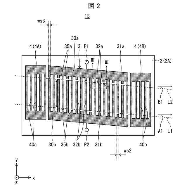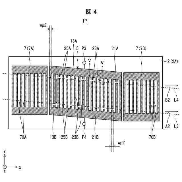 前記並列共振子は、複数の第3ストリップ電極を有する第3反射器と、複数の第4ストリップ電極を有する第4反射器と、をさらに有し、