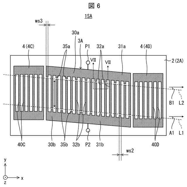 前記第5反射器における複数の前記第5ストリップ電極の本数が、前記第1反射器の複数の前記第1ストリップ電極の本数より多く、