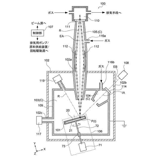 特許文献1では、X線やEUV等の放射線を発生させるためのプラズマ原料を回転体に供給し、回転体においてプラズマ原料が供給される領域にエネルギービーム(レーザビーム)を照射して放射線を得る方法が提案されている。一方が開口した円筒状の容器が回転体として用いられ、この容器に液体状のプラズマ原料が供給され、容器の内周面にレーザ光が照射される。
