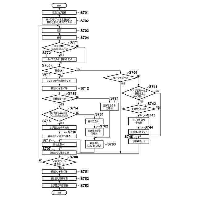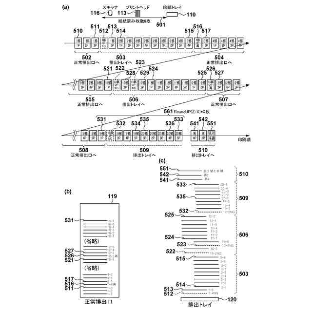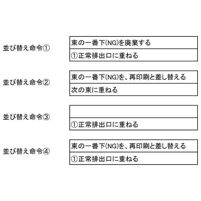 特許文献1は、検査でNG(欠陥有り)と判断された欠陥印刷物以降の既に用紙搬送路に投入された給紙済みの印刷物を有効利用して損紙を削減する技術を開示している。特許文献1は、排出トレイを3つ使用し、1部が複数ページからなるデータを複数部印刷するジョブの場合に正しいページ順となるように制御を実施している。具体的には、正常印刷物を第一のトレイへ排出し、欠陥印刷物を第二のトレイへ排出し、後続の所定枚数の印刷物を第三トレイへ排出し、再印刷物と、その後の未出力ページの出力順を入れ替えた印刷物とを、第一のトレイへ排出する。