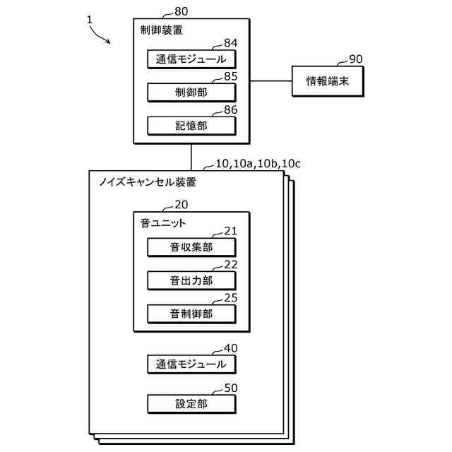 【解決手段】ノイズキャンセル装置10は、外部の装置に通信接続可能な通信モジュール40と、音を収集する音収集部21と、音を出力する音出力部22と、音収集部21および音出力部22を制御する音制御部25と、を備える。音制御部25は、音収集部21で収集した音の音データ信号を、通信モジュール40を介して外部へ出力することが可能であり、および、通信モジュール40を介して取得したノイズキャンセル用のデータ信号に基づく音を音出力部22から出力させることが可能である。