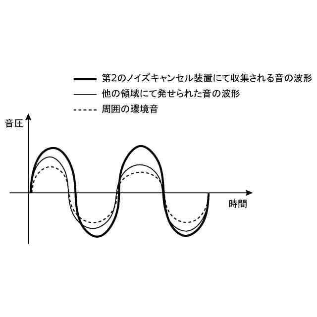 第2のノイズキャンセル装置にて収集される音の波形を示す図である。
