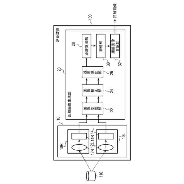 デジタルカメラを用いて被写体までの距離を検出する技術が知られている。例えば、2つのデジタルカメラを所定の間隔で配置し、これら2つのデジタルカメラで同時刻に取得された画像を比較することにより、被写体までの距離を検出する方法がある。このように取得された2つの画像に写る被写体には、被写体までの距離に応じた位置ずれ(視差)が生じるため、この視差を計測することで被写体までの距離を算出することができる。