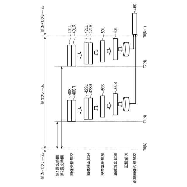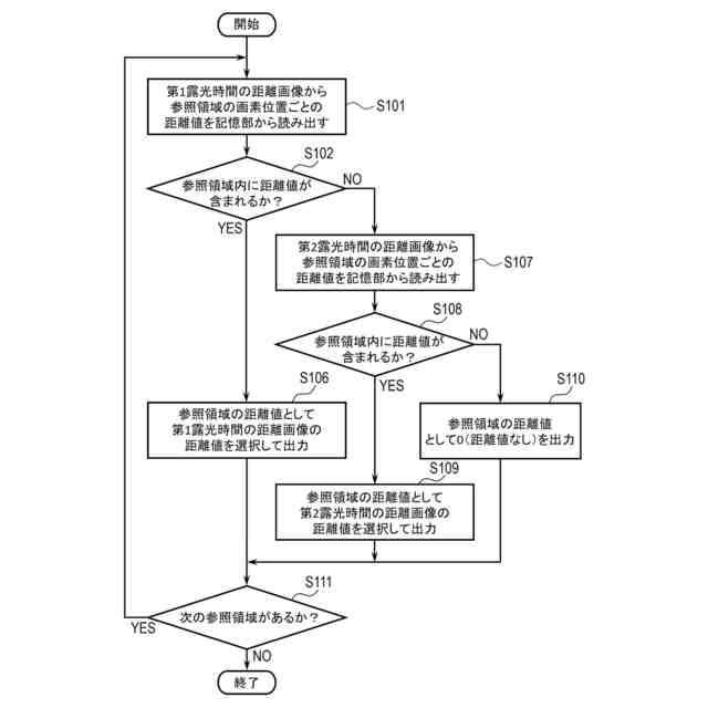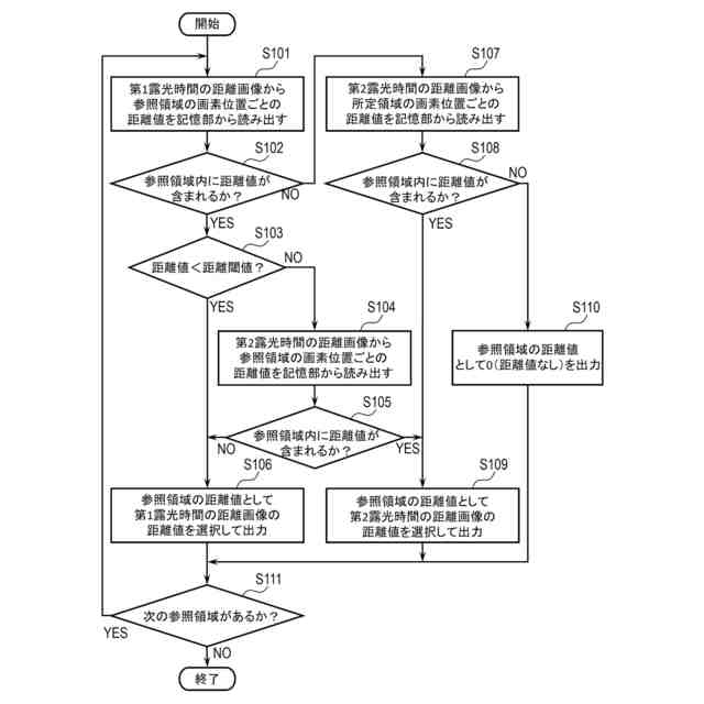 また、本明細書の更に他の一開示によれば、コンピュータを、第1露光時間で撮像された視差のある第1画像及び第2画像と、前記第1露光時間よりも長い第2露光時間で撮像された視差のある第3画像及び第4画像と、を受信する手段、前記第1画像と前記第2画像との間の前記視差に基づく距離情報を表す第1距離画像と、前記第3画像と前記第4画像との間の前記視差に基づく距離情報を表す第2距離画像と、を生成する手段、及び前記第1距離画像及び前記第2距離画像を複数の領域に分割し、前記複数の領域の各々に対応する前記距離情報に基づいて、前記複数の領域の各々において前記第1距離画像及び前記第2距離画像のうちの一方を選択することにより、前記第1距離画像と前記第2距離画像とを合成した合成距離画像を生成する手段として機能させるプログラムが提供される。