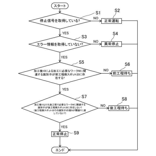 ところで、ワークを加工する加工機が、何らかの原因により停止してしまうことがある。加工機の故障等のエラーに起因する異常停止であれば、加工機から発せられるエラー情報等によって、加工機の停止の原因を容易に特定できる。