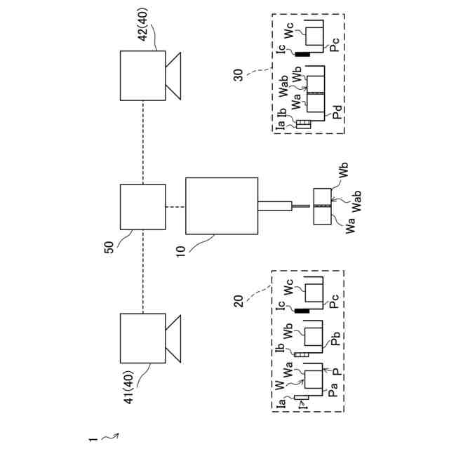 前記カメラは、前記前工程側スポットに配置された前記ワークに関連した前記識別子を撮像するとともに、前記後工程側スポットに配置された前記ワークに関連した前記識別子を撮像し、
