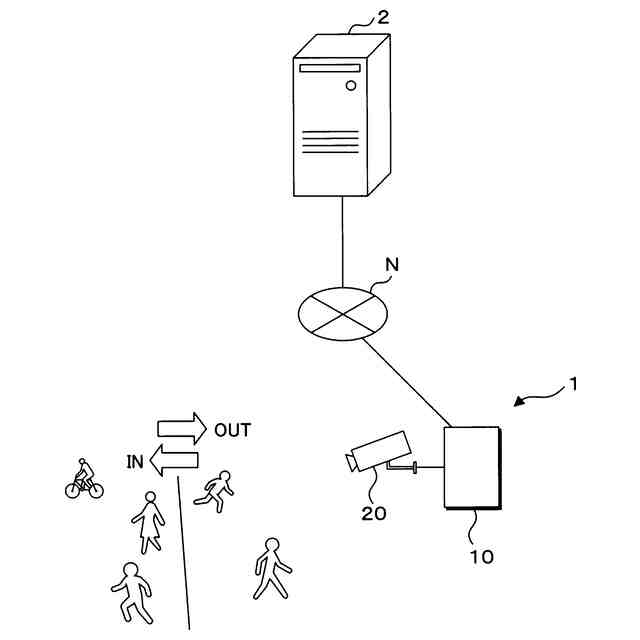図1は、分析システムの構成例を示す図である。本実施の形態では、カメラが撮像した画像(撮像画像)から物体(例えば、通行人)を検出して当該物体の移動を追跡することで、特定のライン又は領域を通過した物体の数(例えば、人数)をカウントする分析システムについて説明する。分析システムは、撮像システム1、サーバ2(管理装置)を含む。撮像システム1及びサーバ2は、インターネット等のネットワークNを介して通信接続されている。