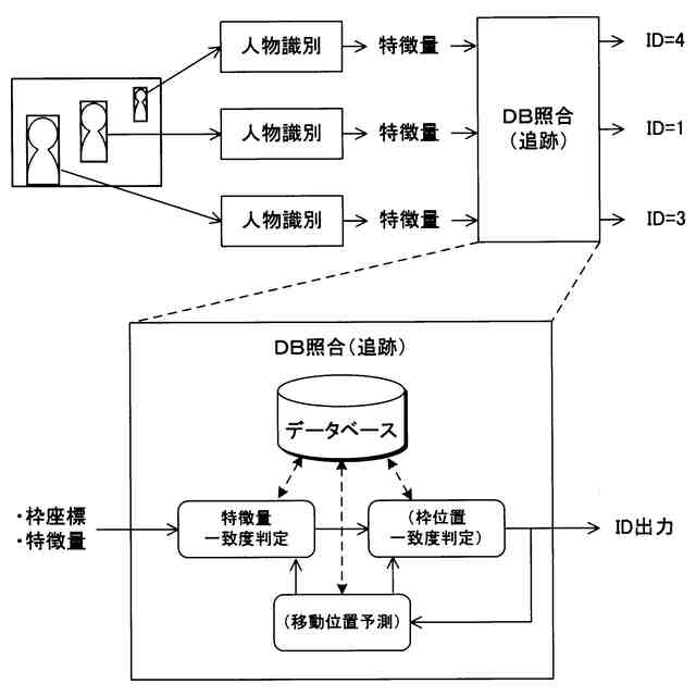 異なるフレーム画像間で各物体の画像特徴量の類似度を算出し、