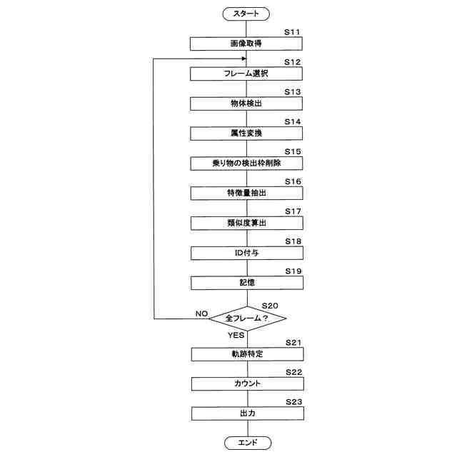 前記変換する処理では、前期乗り物の検出枠と前記他の物体の検出枠との重畳度合いの指標値が閾値以上の割合である場合に属性を変換し、前記指標値が閾値未満の場合は前記属性の変換を実行しない