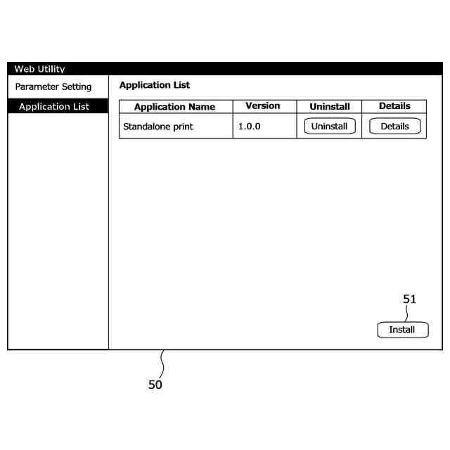 アプリをインストールするWeb Utility画面である。