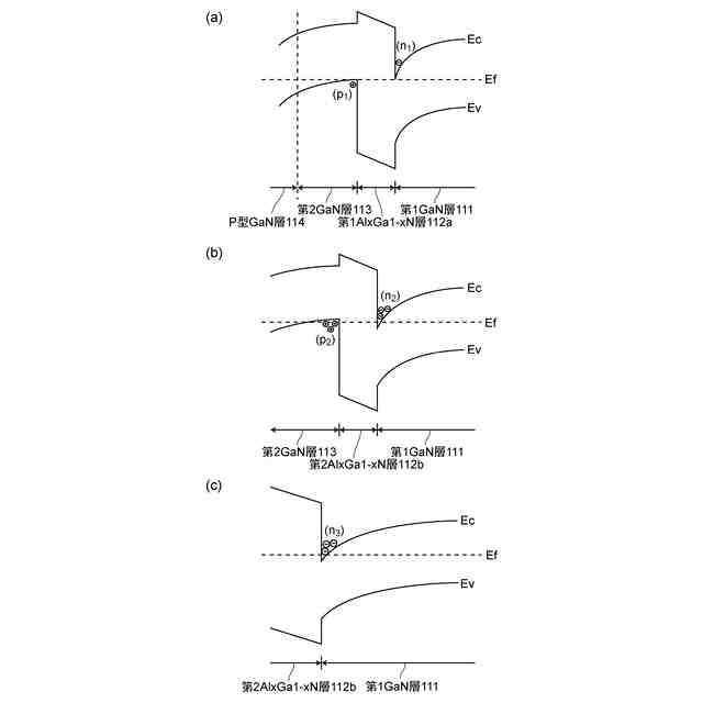 N層122bは、無ゲートバイアス状態において、第1GaN層111と第2Al
