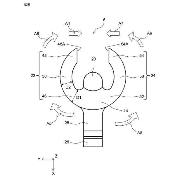 前記アーム部は、前記接続部からそれぞれ延びる第1アーム部および第2アーム部を有し、