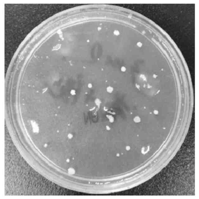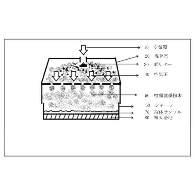 請求項1に記載の方法で用いられる装置であって、前記装置は、乾燥粉末噴霧器であって、コンピュータ制御システム、シャーレ機械搬送システム、乾燥粉末装填・定量装置、乾燥粉末混合・噴霧システムからなり、前記乾燥粉末装填・定量装置の定量装置には、乾燥粉末定量孔が設計され、乾燥粉末の重量を利用して、前記乾燥粉末装填・定量装置の乾燥粉末定量容器から乾燥粉末が前記乾燥粉末定量孔に自然落下し、前記シャーレ機械搬送システムによって、前記寒天培地を含むプレートを前記乾燥粉末混合・噴霧システムに移動し、気体混合流を利用して乾燥粉末を前記プレート表面に噴霧することを特徴とする装置。