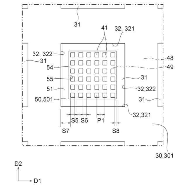前記金属層は、前記複数の第2開口が形成された有効領域と、前記有効領域を取り囲む周縁領域と、を含み、