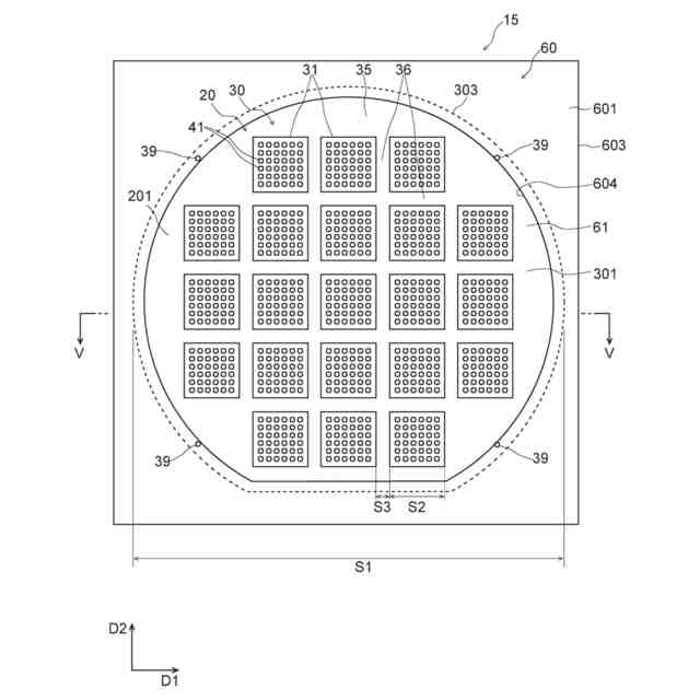 前記基材は、平面視において前記複数の第1開口の間に位置する内側領域と、前記基材の外縁に沿って広がり、平面視において前記複数の第1開口及び前記内側領域を囲む外側領域と、を含み、