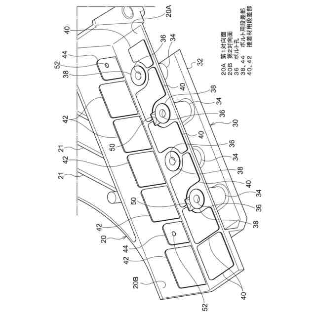 さらに、接着材用段差部は、前記ボルト用段差部の周囲に前記ボルト用段差部に対して隙間をあけて複数に分割して配置されている。これにより、接着材が隣接する接着材用段差部の隙間に入り込むことで、接着材が意図しない部分まで広がらずに済み、締結対象部材の締結状態を良好に維持できる。