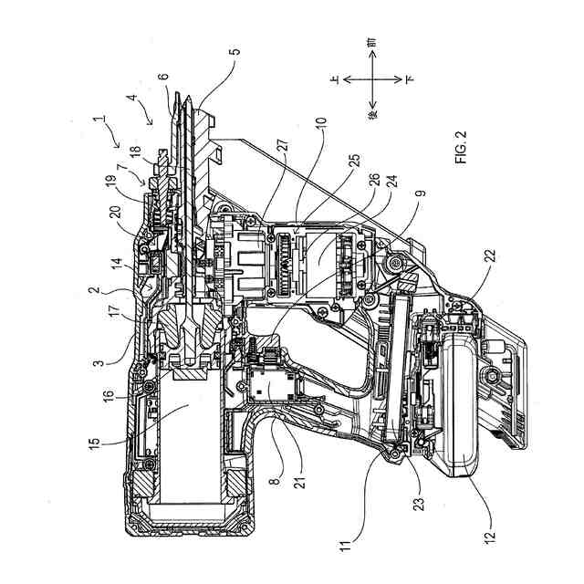 電動釘打ち機のような往復動工具では、モータの作動中にバッテリ電圧が第一閾電圧を下回って、モータが停止されると、ドライバのような往復部材が不適切な位置で停止する虞がある。