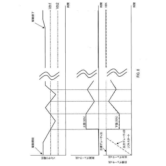 前記制御回路は、第3の条件が成立していることに応じて、前記出力デューティ比を時間の経過に従って所定の減少率で漸次的に減少させるように構成され、