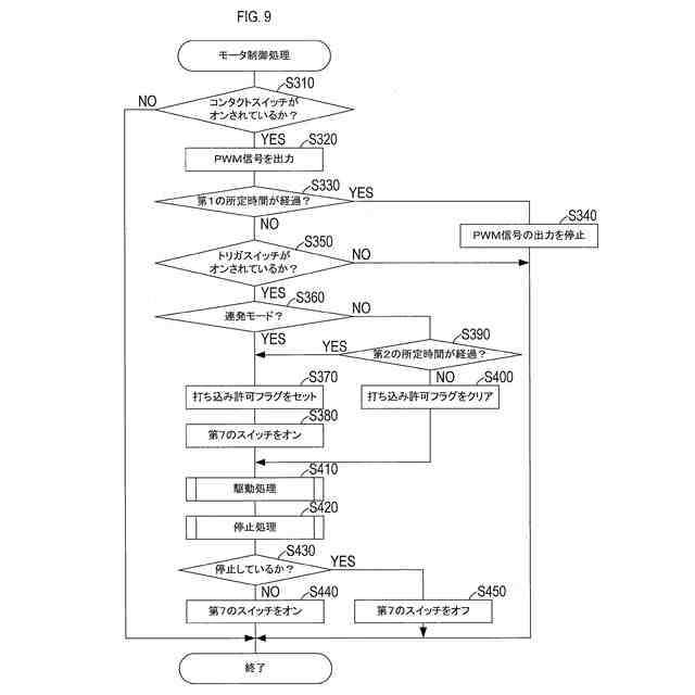 (i)第1の接点と、第2の接点とを備え、(ii)前記往復動工具の使用者によって手動でオンまたはオフされるように構成された第1の手動スイッチであって、前記第1の接点は、前記電源に接続され、前記第2の接点は、前記駆動回路に接続され、前記第1の手動スイッチは、(i)そのオン状態において、前記第1の接点を前記第2の接点に接続し、(ii)そのオフ状態において、前記第1の接点を前記第2の接点から切断するように構成されている、第1の手動スイッチと、