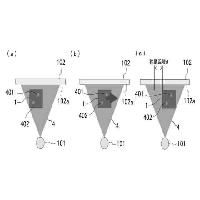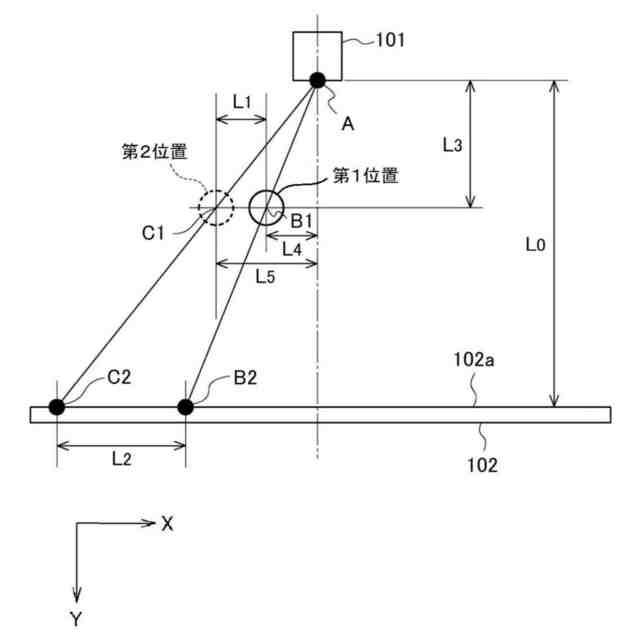 本発明の第1の態様において、ずれ量は、撮像画像に含まれる対象物の、第1位置に前記第1時間の間維持して得られた像の輝度が最大値を取る撮像画像上の位置と、第2位置に第2時間の間維持して得られた像の輝度が最大値を取る撮像画像上の位置との間の距離であってよい。