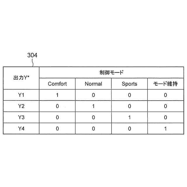 本発明の第2の実施形態の自動適合車両システムにおける最適制御モード推定部106の処理の一例に関する図であり、ドライバNo.と運転嗜好モデルとの関係を示した真理値表である。