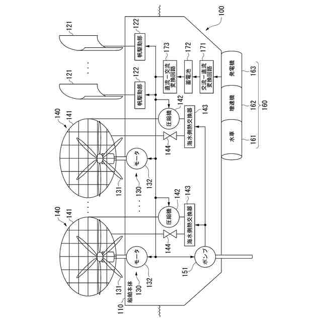 前記ヒートポンプが前記空気を冷却する場合に、海洋混合層よりも下の海水を冷却水として前記ヒートポンプに供給する取水部を備える、