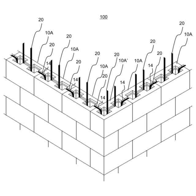 そこで、本発明は、かかる事情に鑑みて考案されたものであり、一般的な構築用ブロックを使用しても、水糸張り、目地形成などの手間がかからず、熟練も要さず、さらに、重くて嵩張る鉄筋やモルタルなどの補強具を不要とし、これにより、施工部品数や施工時の工数を減少させると共に、構造体の一体性が増し、耐震性が強くなる構築用ブロックを含む構造体およびその構造体の構築方法を提供するものである。