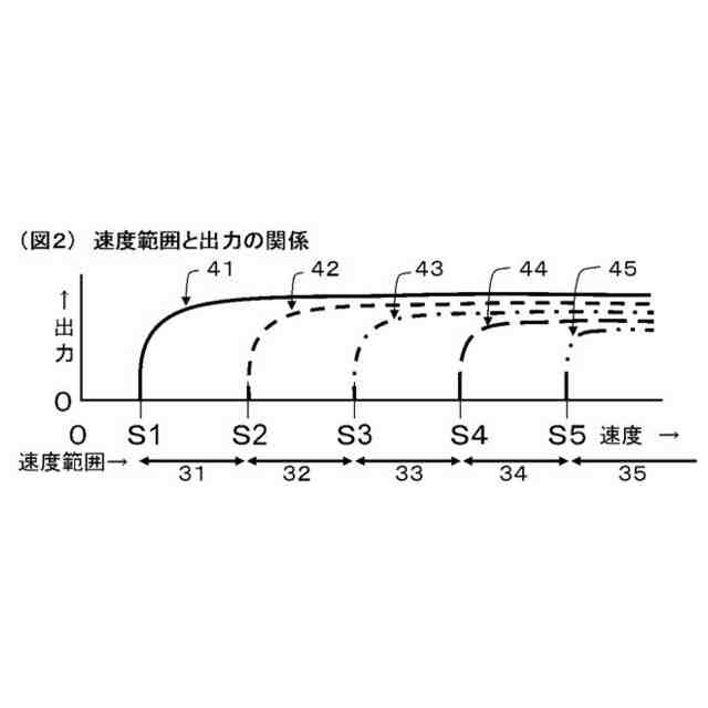 図2は、速度範囲と出力の関係 である。(実施例2)
