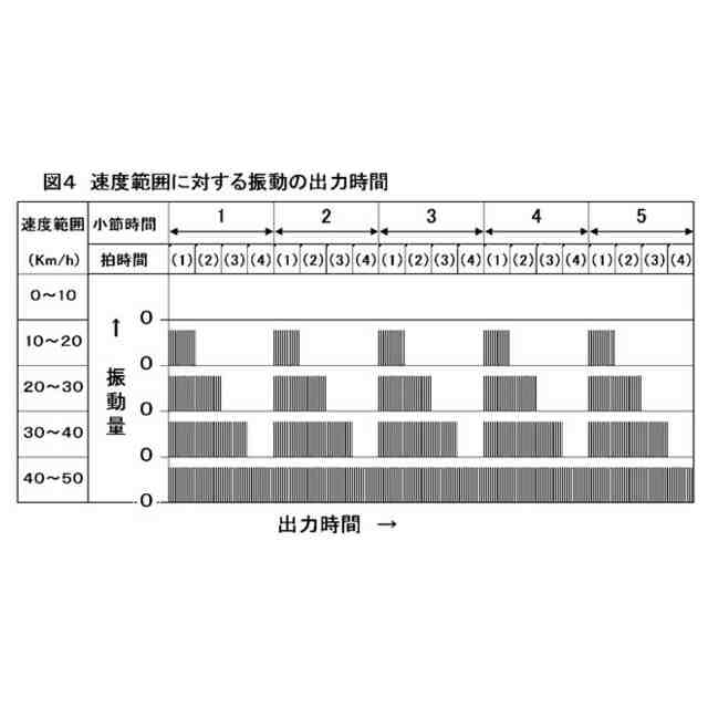 3.これにより、運転者は上記の振動を生じさせたと同じ音源による車内に出力する楽曲を同時に聴くことで、その楽曲と振動が一致する小節の中の音符の拍数を運転者が理解できるようになる。