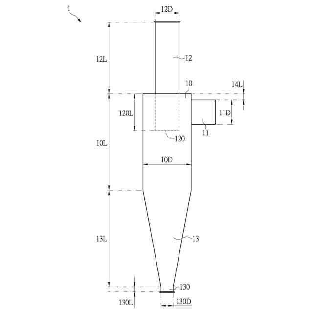 前記少なくとも1つの粒子分離部品の本体の直径は所定値で定義され、前記第1のガス入力部の直径及び前記第1のガス出力部の直径は前記所定値の0.01~1倍であり、前記少なくとも1つの粒子分離部品の本体の長さ及び前記異物エクスポート部の長さは前記所定値の0.5~4倍であり、前記第1のガス出力部の長さは前記所定値の1~4.5倍であり、