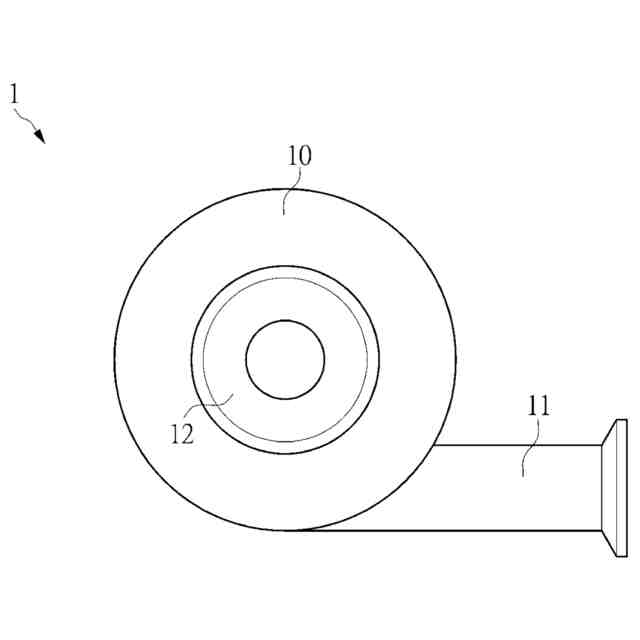 前記少なくとも1つの気流出力部品の本体はキャビティ部及びガイドイヤー部を有し、前記キャビティ部の一方端が外側に延伸して第2のガス出力部を形成し、前記キャビティ部の他方端が外側に延伸して第1のフック部を形成し、前記ガイドイヤー部は前記キャビティ部の側辺を囲み、前記ガイドイヤー部の外縁が外側に延伸して前記気流導入部を形成し、前記ガイドイヤー部の一方端が前記キャビティ部に接続され、前記ガイドイヤー部の他方端が旋回方式で前記キャビティ部に延伸して第2のフック部を形成し、且つ前記第2のフック部が外側に延伸して前記第2のガス入力部を形成し、