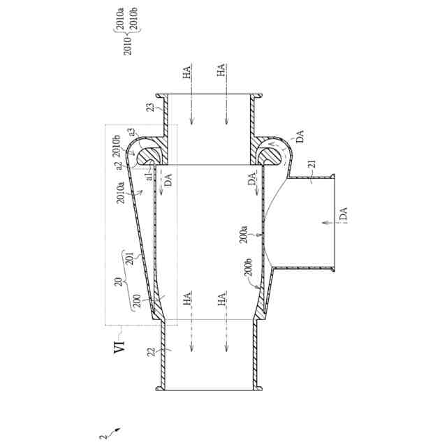 前記特殊流路は導流エリア及び排出エリアに区画され、前記導流エリアは前記排出エリアに接続され、前記導流エリアの断面は円錐形状であり、前記排出エリアの断面はC字形状またはフック形状であり、