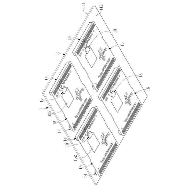 図1から図5を参照されたい。図1及び図2は、本発明のテスト装置にチップキャリア基板が設置されていることを異なる視角で示す模式図である。図3は本発明のテスト装置の回路メイン基板とチップキャリア基板を示す分解模式図であり、図4は本発明のテスト装置が外部電源、外部信号リーダー装置及び外部信号入力装置に接続されていることを示す模式図である。図5は本発明のテスト装置の回路メイン基板と信号キャリア基板を示す分解模式図である。