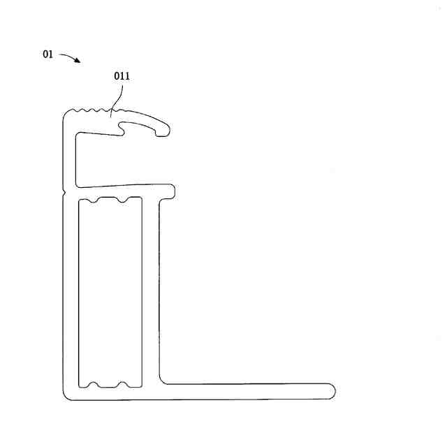 通常の光発電フレーム(01)は積層体を3面で固定するC型部材であり、図1に示すように、光発電フレームは、一般的にA面(011)構造を有する。積層体がこのような光発電フレームに取り付けられた時、A面は積層体の受光面よりも高い位置にあり、A面の遮蔽により、長時間の使用中に積層体に多くの塵埃が溜まり、雨水や露などの自然洗浄後に塵埃が積層体のA面に近い領域まで洗い流され、積層体の受光面に水溜まりや灰溜まりなどの不具合が生じる。光発電フレームによって積層体に対する遮蔽効果を低減するために、A面構造設計をキャンセルした光発電フレームが市販されているが、このようなフレーム構造は、積層体に対する接着強度が不十分であり、且つ積層体を接着する間に接着剤が積層体の表面にこぼれ出しやすく、積層体の表面に遮蔽の影響を及ぼし、且つ美観に不利である。