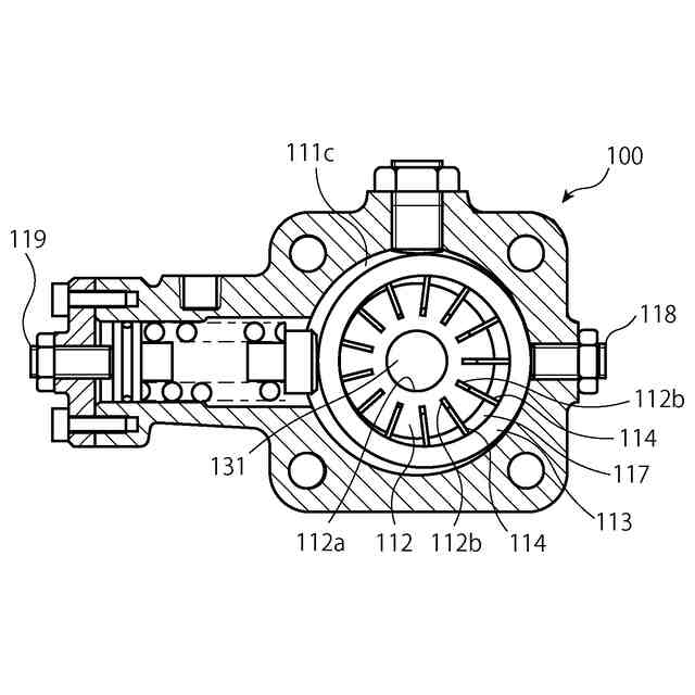 (7)前記ポンプ側回転軸は、両側が前記ポンプ回転要素から突出し、前記ポンプ回転要素より前記一端側に設けられた第1の軸受と、前記ポンプ回転要素より前記他端側に設けられた第2の軸受とを介して、前記ポンプケースにより回転可能に支持され、前記第1の軸受と前記第2の軸受は、前記オイルシールより前記一端側に設けられた、ものであり、前記ポンプ側回転軸は、両側が前記ポンプ回転要素から突出し、前記ポンプ回転要素より前記一端側に設けられた第1の軸受と、前記ポンプ回転要素より前記他端側に設けられた第2の軸受とを介して、前記ポンプケースにより回転可能に支持され、前記第2の軸受は、前記第1の先端部が前記第1の嵌合孔に嵌合している部分における前記ポンプ側回転軸の外周側に配置されてもよい。