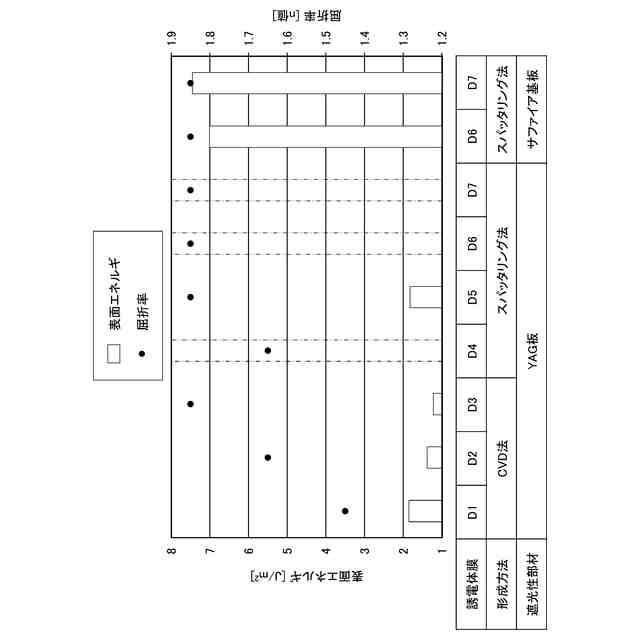 誘電体膜の組成と表面エネルギおよび屈折率との関係を示す図である。