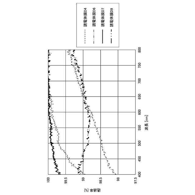 誘電体膜の組成と光の透過率との関係を示す図である。