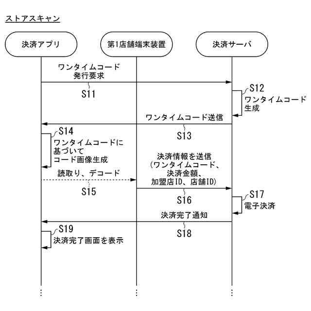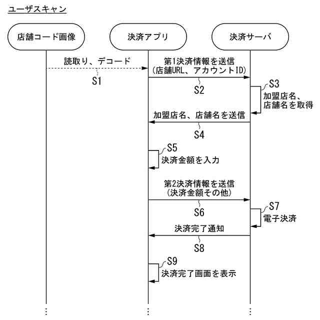 電子決済の大まかな流れを例示したシーケンス図(その1)である。